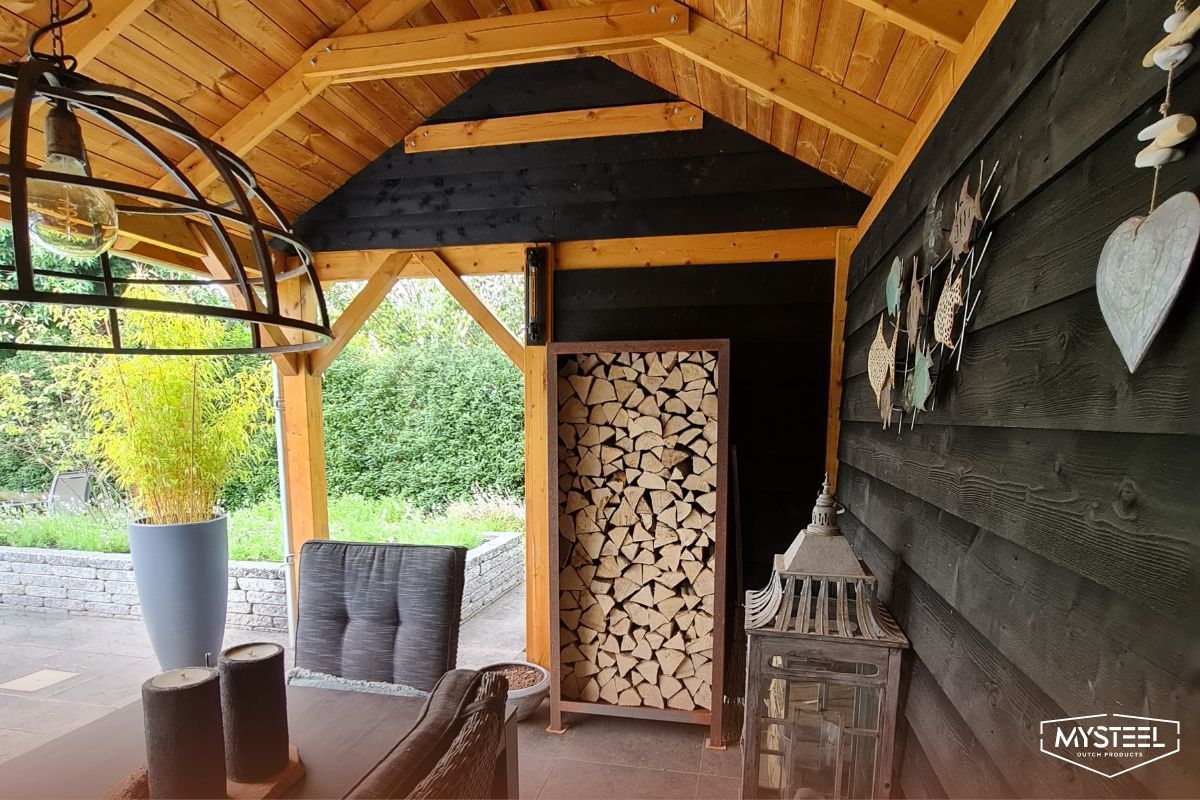 - Ujistěte se, že zadní část skladu není úplně uzavřená. Tím se lépe cirkuluje vzduch. Sklad dřeva z cortenové oceli a ocelový sklad dřeva od MySteel jsou například otevřené ze zadní strany.