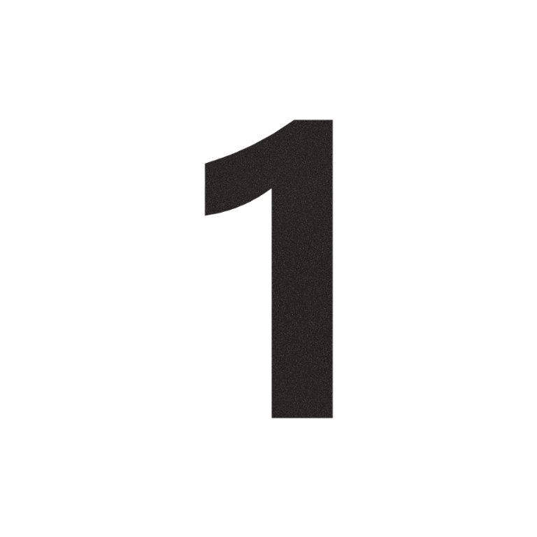 Toto číslo domu je vybaveno distančními držáky, které zajišťují, že je číslo domu namontováno s malou vzdáleností od zdi. Distanční držáky zajišťují čistý konečný výsledek, při kterém to vypadá, jako by číslo domu levitovalo. Při montáži zašroubujete dodané drátové kolíky do závitů distančních držáků a tyto poté zasunete do (s tmelem naplněného) vyvrtaného otvoru ve zdi. Po zaschnutí tmelu zůstane číslo domu pevně uchyceno ve zdi. Číslo domu je vyrobeno z nerezové oceli. Produkty jsou opatřeny černým povlakem s matnou jemnou strukturou. Tento povlak je odolný vůči UV záření.
