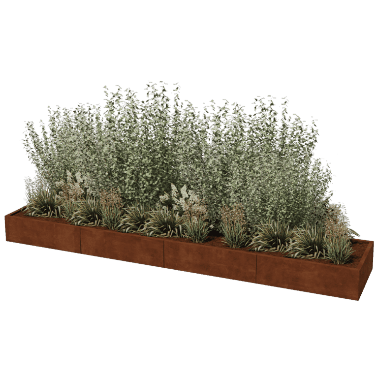 Panely našich modulárních květinových boxů jsou vyrobeny z vysoce kvalitního Corten-A ocelového plechu. Tento typ kovu má jedinečnou vlastnost, že vytváří velmi hustou oxidační vrstvu (rezovou vrstvu) . Díky tomu je prorezavění nemožné. Hustá oxidační vrstva chrání hlouběji ležící materiál před kyslíkem, což výrazně zpomaluje oxidaci, zatímco koroze pokračuje. Květinový box z cortenové oceli je dodáván bez rzi, v šedé kovové barvě. Proces rezivění začíná po týdnech až 2 měsících, není potřeba žádná úprava. Během procesu rezivění může květinový box zanechat stopy. Cortenová ocel je kovová slitina, která se skládá z železa, do kterého byly přidány měď, fosfor, křemík, nikl a chrom.