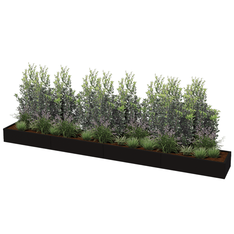 Tento květinový box je modulární ocelový květinový box, který je dodáván jako stavebnice. Květinový box se skládá z jednotlivých panelů a rohových kusů. Boxy lze zcela bez viditelných spojů spojit. Neexistují žádné viditelné upevňovací prvky. Díky našemu modulárnímu systému jsou možné také velmi velké rozměry. Použitím rohových kusů jsou možné jedinečné tvary, které nikde jinde nejsou standardně k dispozici. Podívejte se do příručky pro více informací.