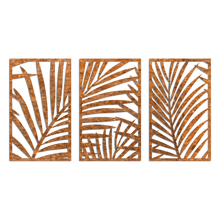 Tato nástěnná dekorace je vyrobena z vysoce kvalitního plechu Corten-A. Tento typ kovu má jedinečnou vlastnost, že vytváří velmi hustou oxidační vrstvu (rez). Prorezavění je nemožné. Díky husté oxidační vrstvě je hlouběji ležící materiál chráněn před kyslíkem, což výrazně zpomaluje oxidaci, zatímco koroze pokračuje. Nástěnná dekorace je dodávána bez rzi, v šedé kovové barvě. Začátek procesu rzi nastává během prvních 2 měsíců, není potřeba žádná údržba. Během procesu rzi může produkt zanechávat stopy.