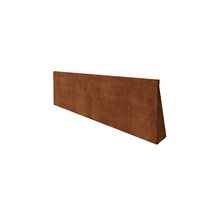 Opěrné zdi jsou vyrobeny z vysoce kvalitního ocelového plechu Corten-A. Tento typ kovu má jedinečnou vlastnost, že vytváří velmi hustou oxidovou vrstvu (rez). Prorezavění je tímto nemožné. Díky husté oxidové vrstvě je hlouběji ležící materiál chráněn před kyslíkem, což výrazně zpomaluje oxidaci, zatímco koroze pokračuje. Opěrné zdi jsou dodávány bez rzi, v šedé kovové barvě. Proces rezivění začíná v prvních 2 měsících, není potřeba žádná údržba. Během procesu rezivění mohou opěrné zdi zanechávat stopy. Cortenová ocel je slitinou kovu, která se skládá z železa, ke kterému byly přidány měď, fosfor, křemík, nikl a chrom.