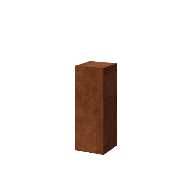 Sokl má čtvercový tvar o rozměrech 30 x 30 x 80 cm a je vyroben z jednoho kusu cortenové oceli o tloušťce 2 mm. To zajišťuje pevnou konstrukci, která unese až 100 kg. Sokl je dodáván s montážním materiálem pro snadné upevnění na místo.