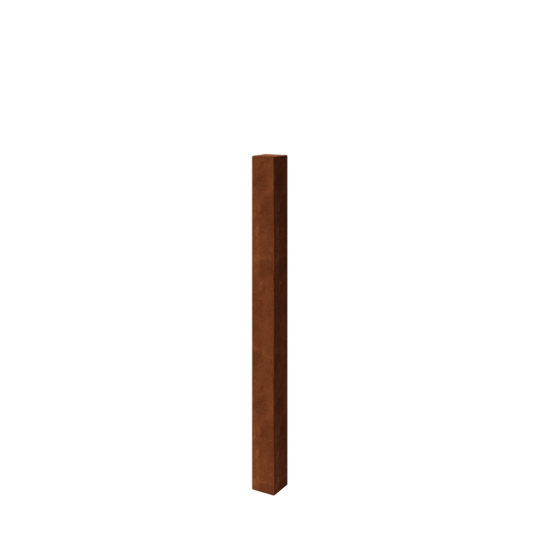 Sloupek je vyroben z vysoce kvalitní cortenové oceli, která vytváří přirozenou ochrannou vrstvu rezavé patiny. Tato vrstva zabraňuje korozi a zajišťuje dlouhou životnost, což činí materiál ideálním pro venkovní použití.